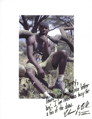 Autograph #6 – This is an 8.5 X 11 autographed photograph of Clarence Black. Black was a contestant on Survivor Africa. He was the 7th voted out on Day 21. I received his address from a publication called Autograph Collector Magazine. I don’t believe that are in business anymore.