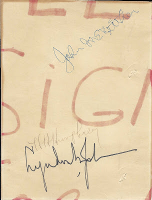 The very first autograph that I obtained was when I was 10 years old. My dad was the local campaign manager for our 36th President Lyndon Baines Johnson. President Johnson was flying into New Orleans to give a speech at the Jung Hotel on October 9, 1964. My dad made a sign that stated “MR PRESIDENT PLEASE SIGN MY SIGN. Dad was able to get us on the tarmac at the airport. We were able to meet President Johnson as he exited the plane. What I can remember is that he came straight to me and shook my hand. I remember he had a band aid on his right hand. He took my sign and autographed it. Later I had several reports come up to me to get my name. Below is what my dad cut from the sign. Dad later obtained the autograph of then Vice President Hubert Humphrey and Louisiana Governor John J. McKeithan. Therefore these are autographs #1, 2 & 3 in my collection.