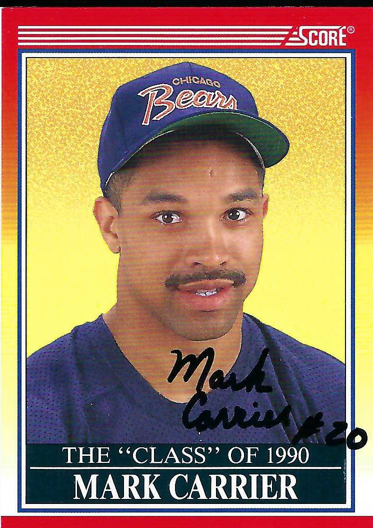 Autograph #93 – This is an autographed 1990 Score Trading Card of Mark Carrier while he was playing with the Chicago Bears. Carrier played defensive back for the Bears from 1990 -1996. Carrier was drafted by the Chicago Bears in the 1st round (6th overall) of the 1990 NFL Draft out of USC.