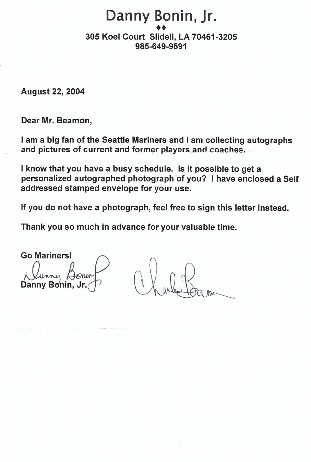 Autograph #98 – This is an autographed letter of Charlie Beamon Jr with the Seattle Mariners. Beamon played DH for the Mariners from 1978-1979. Beamon was drafted by the Seattle Mariners from the Kansas City Royals in the 1976 rule 5 draft. Beamon was signed as a free agent out of Laney College in 1973 by the Kansas City Royals.