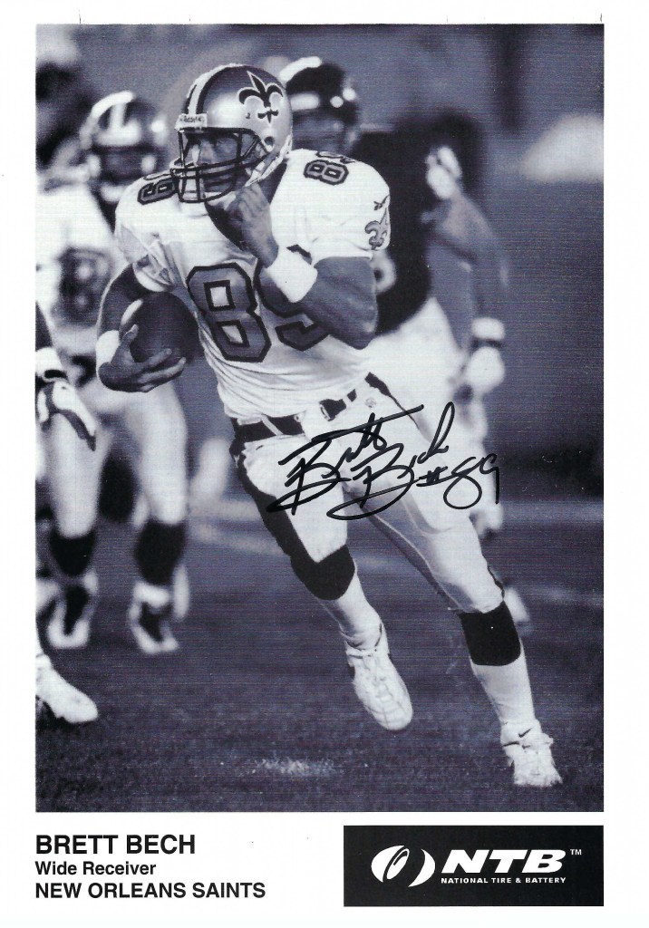 Autograph #114 – This is an 8×10 autographed photograph of former New Orleans Saints wide receiver Brett Bech. Bech played with the Saints from 1996-1999. Bech was signed as a free agent out of LSU. Bech played in the XFL in 2001 for the Las Vegas Outlaws and in AFL for the Indiana Firebirds from 2002-2004.