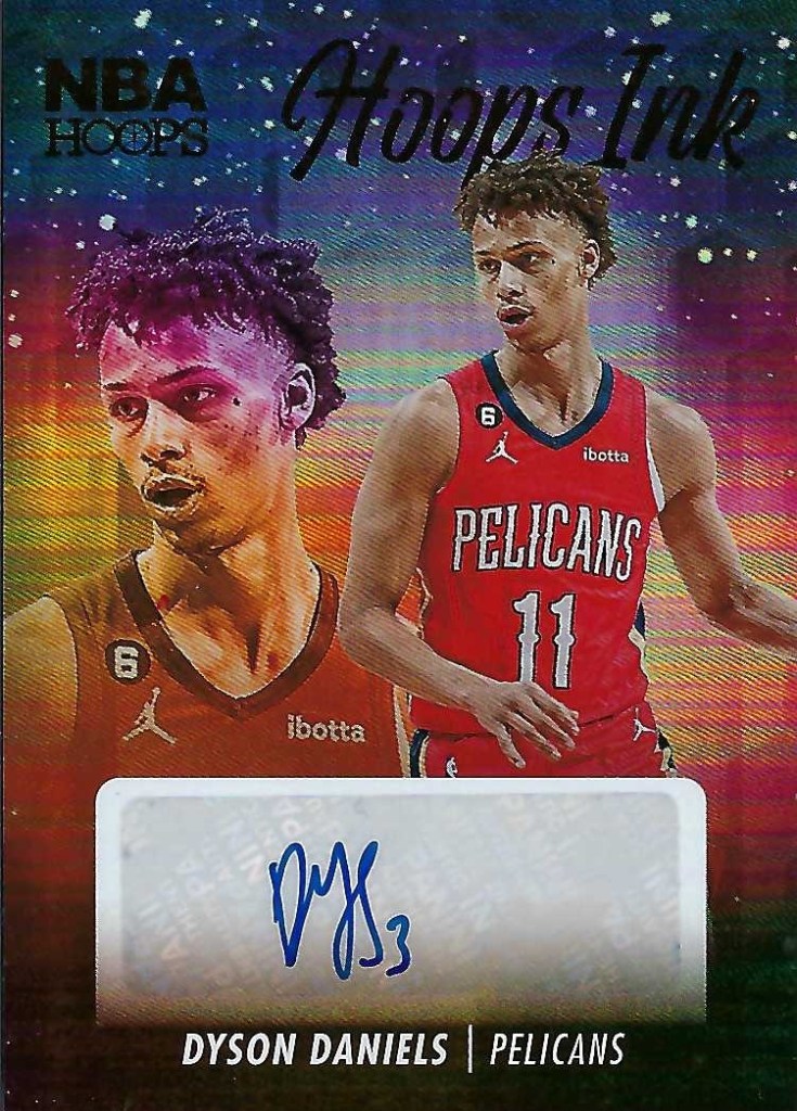Autograph #129 – Added to our personal collection – 2023-24 Hoops – Hoops Ink #HI-DYS Dyson Daniels AU New Orleans Pelicans. We purchased it at Chuck’s Field of Dreams in Albany, LA.