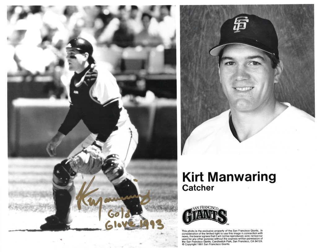 Autograph #177 – Today we received an autographed 8X10 photograph from our request to former MLB catcher Kirt Manwaring (Autograph request #102) in a San Francisco Giants uniform. He inscribed it “Gold Glove 1993”. It took 15 days to get his response. We sent our request to Kirt Manwaring, 18690 SE Lakeside Way, Jupiter, FL 33469-8111. Thank you Mr. Manwaring!