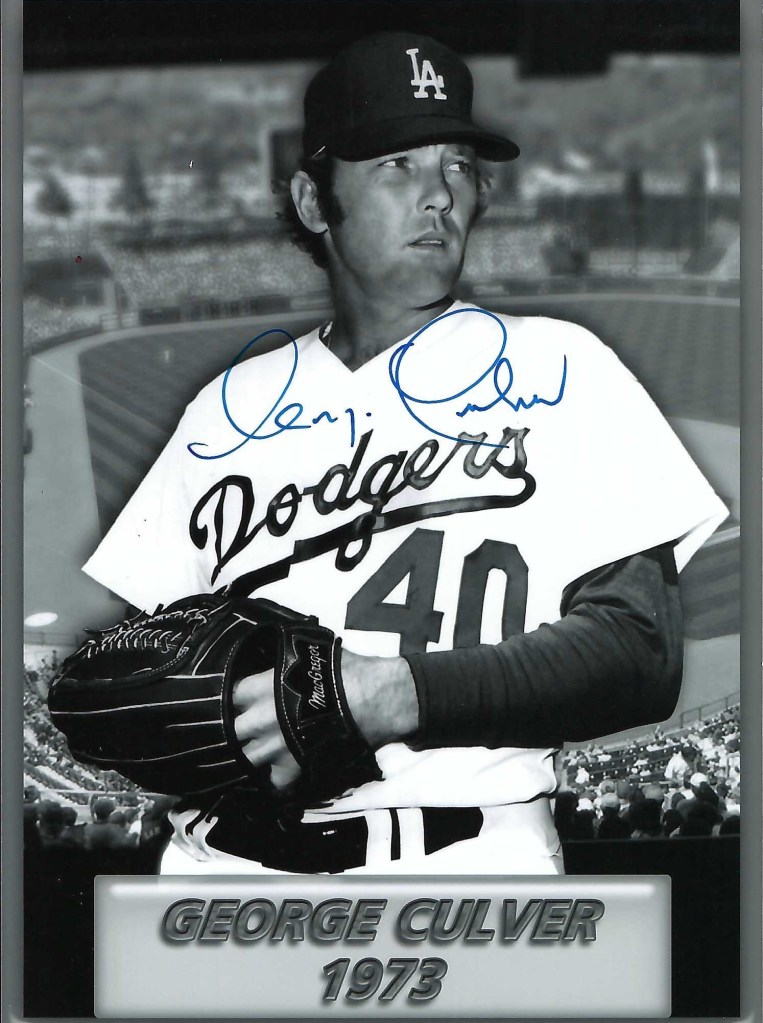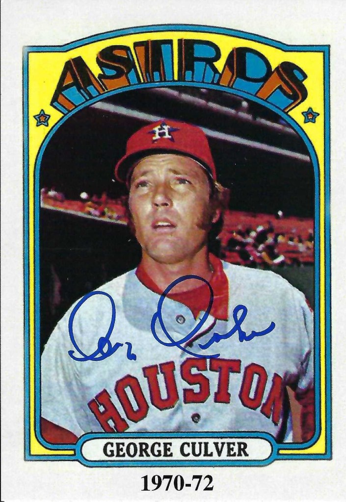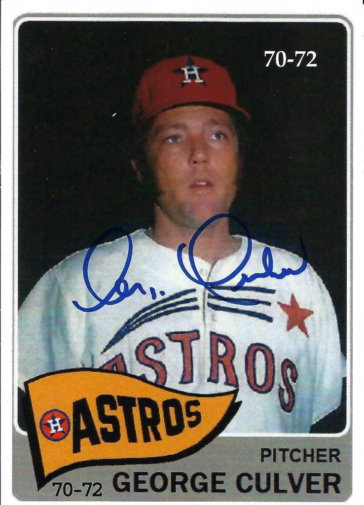 Autographs #197, 198, & 199 – Today we received a response from our autograph request #112 – George Culver. It took 23 days to receive his response. We received two nice 3.5X5″ autographed photographs of him in a Houston Astros uniform. We also received an 5X7″ autograph photograph of him in a Los Angeles Dodgers uniform. We sent our request to George Culver, 5409 Rustic Canyon Street, Bakersfield, CA 93306. Thank you very much Mr. Culver.