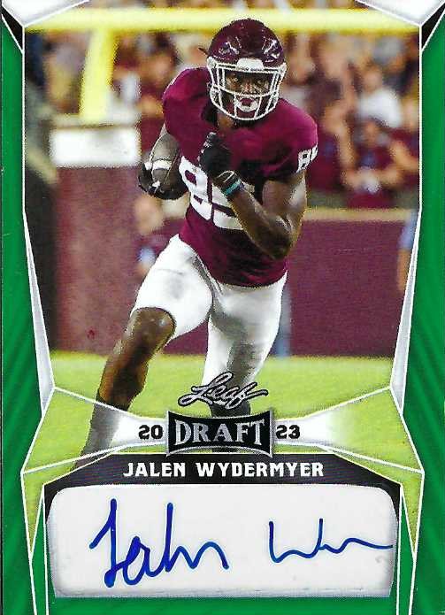 Autograph #250 – added to our personal collection – 2023 Leaf Draft Autograph Green #BA-JW3 Jalen Wydermyer