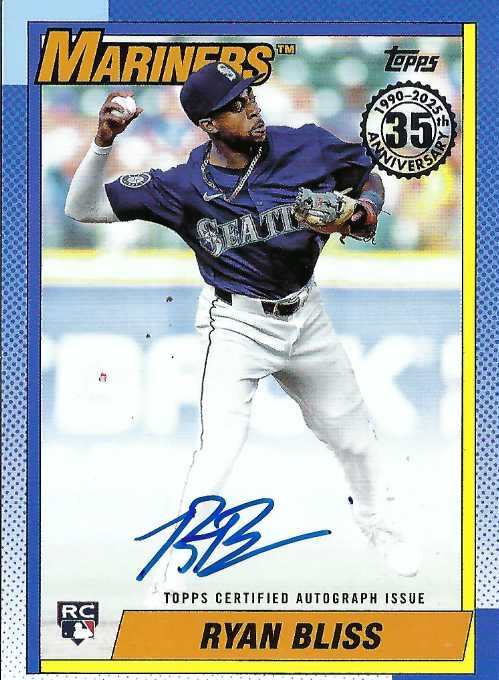 Autograph #277 – Acquired in a trade on the Trading Card Database for our personal collection. 2025 Topps – 1990 Topps Baseball 35th Anniversary Autographs (Series Two) #90A-RB Ryan Bliss AU